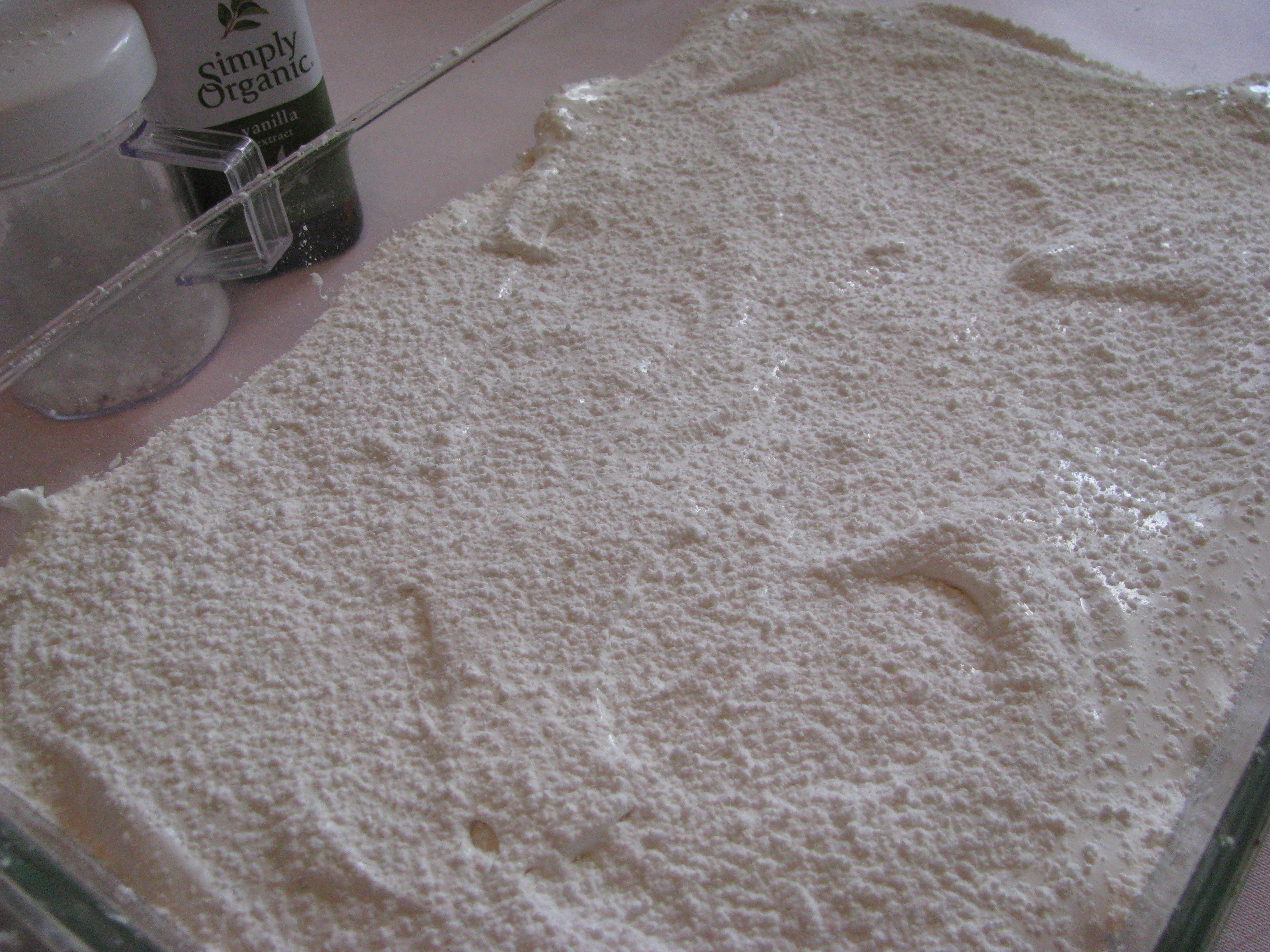 When searching for a homemade marshmallow recipe, I first came across one that used egg whites… uncooked. I wasn't willing to risk Salmonella, so I continued my search. I ended up with one from Martha Stewart, which proved to be an excellent choice. The vanilla flavor intensifies after 24 hours. Yum… so much more tasty than the store-bought variety that have modified cornstarch, tetrasodium pyrophosphate (whipping aid), artificial flavor, and artificial color (blue #1). In my next post, I will share a photo so that you can see that the cutest fluffy snowman that I made from them!