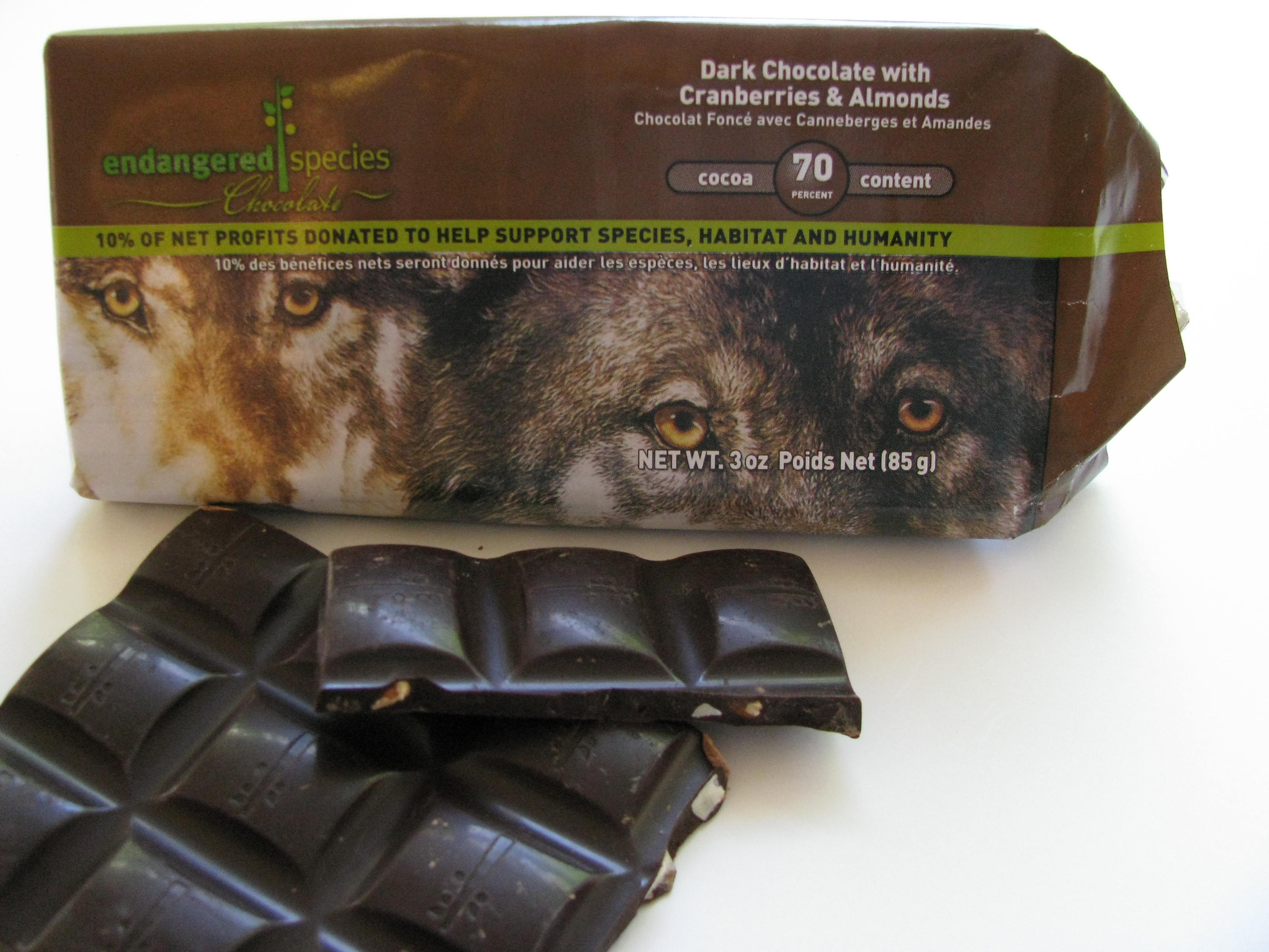 On eatingwell.com, you can sign up for "health e-savers coupons" and you will receive coupons in your inbox to print. Presently, there are three that excite me. One is "Buy any 2 Organic Valley Products. Get $2.00 off." The other two coupons really really excite me. They are both for Endangered Species Chocolate… $1.00 off 2-3 oz. bars and $0.75 off bite-sized treat pouches. The chocolate is made with "ethically traded milk and dark chocolate and 10% of the company's net profits are donated to help support species, habitat, and humanity."