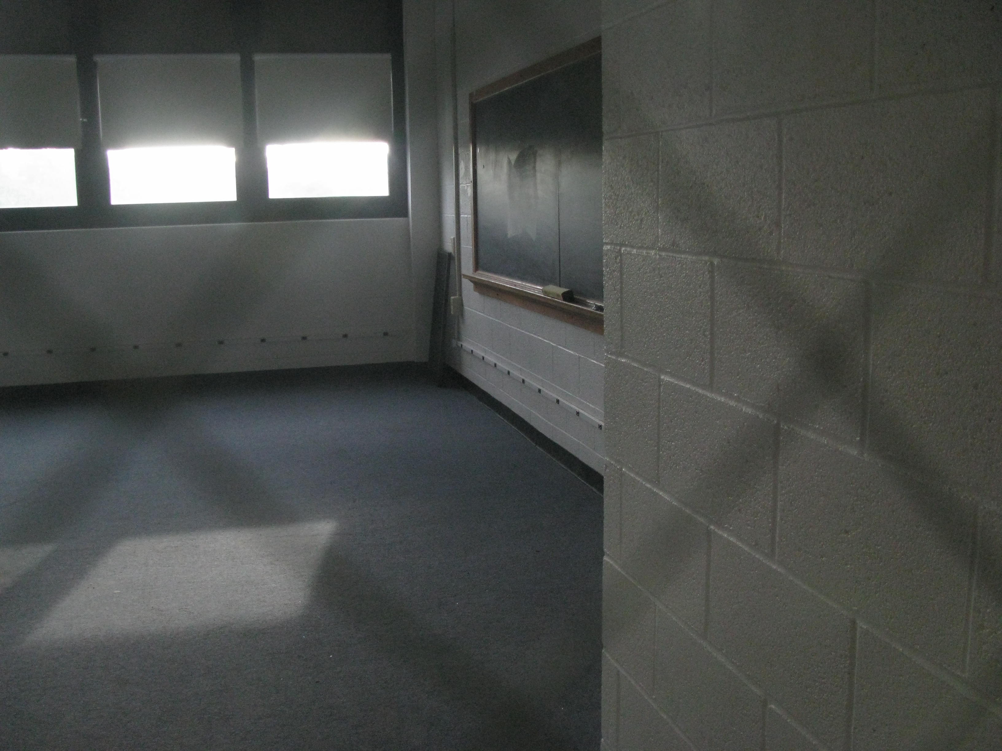 For nostalgia's sake, I shot a photo of a second floor bathroom in what was formerly the 9th grade wing. It holds fond memories for me since I remember whisking in there between classes to fluff and primp. You know… I know you do… those all-important junior high years when image rates far and above anything else.