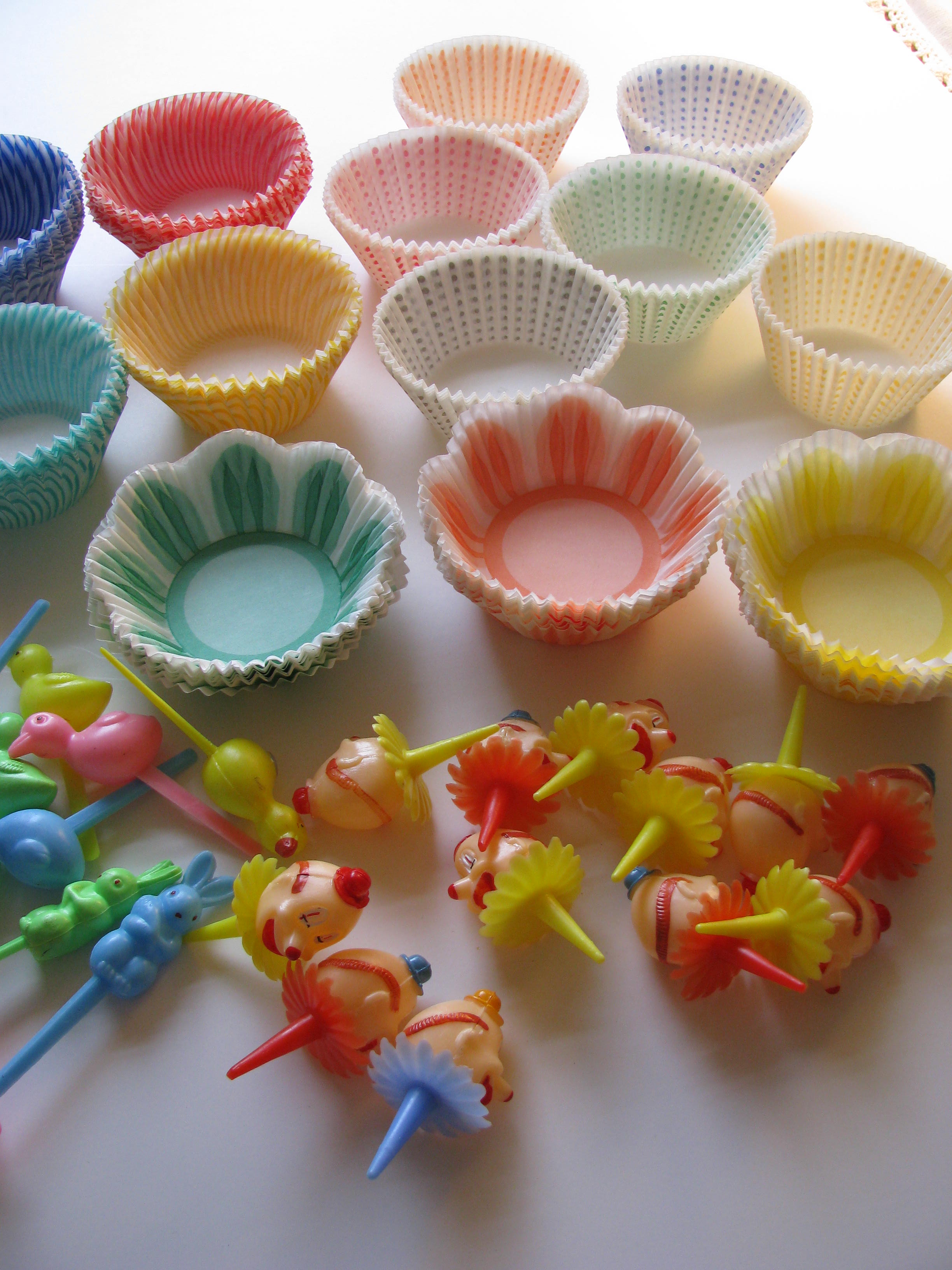 For Christmas, my daughter Jessie gave me this vast array of cupcake papers and picks… so many bright colors, shapes, and patterns! I see some seriously fun cupcake baking in my future.