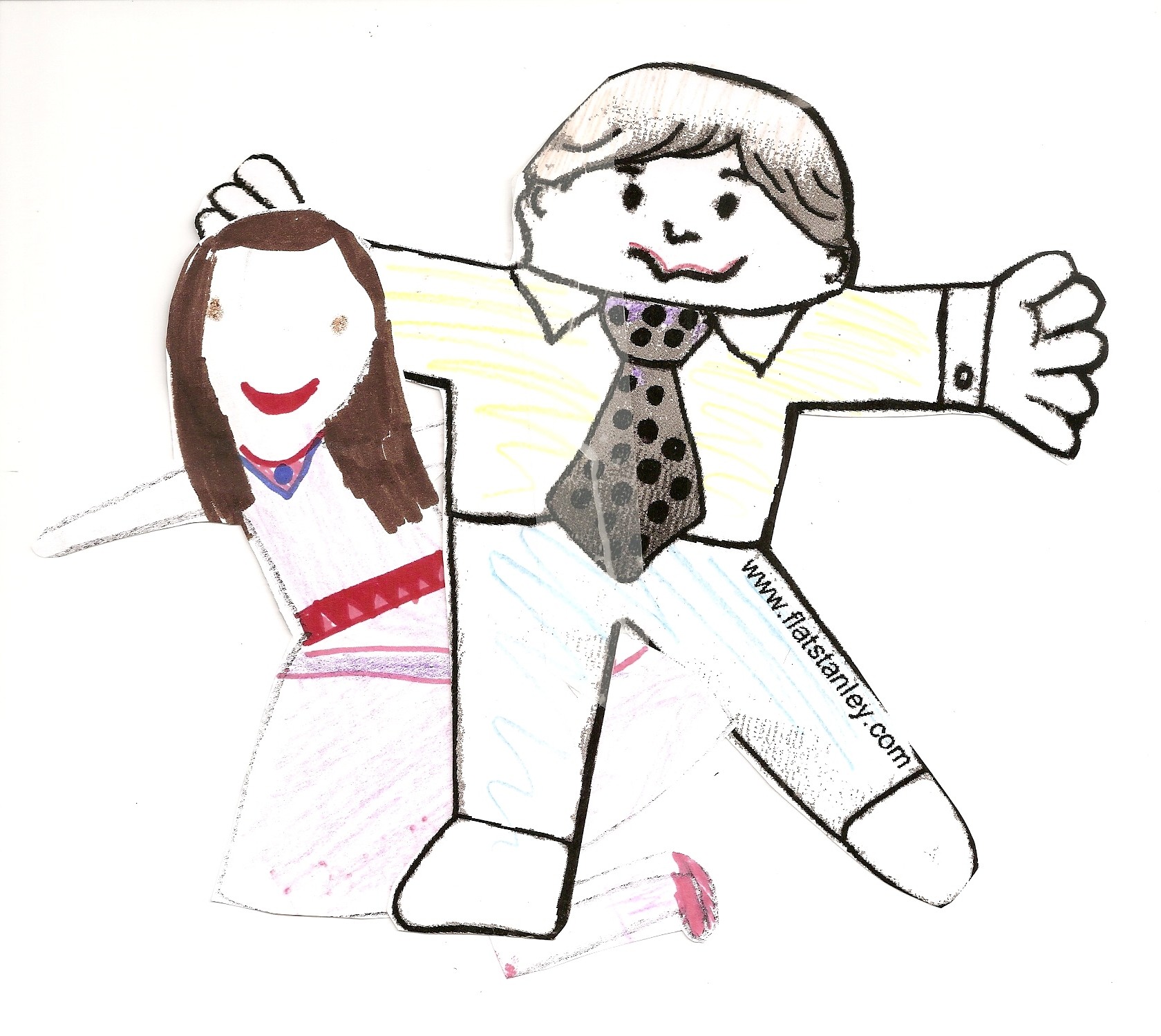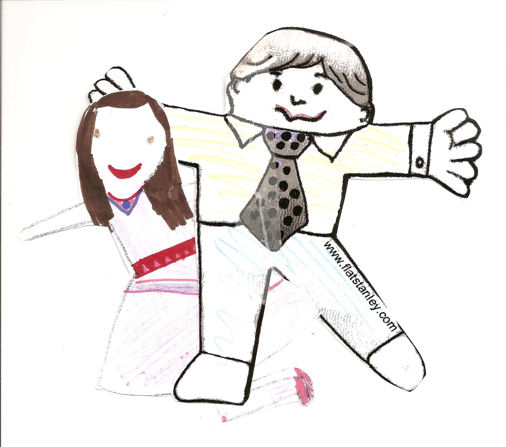 Flat Stanley arrived in the mail today for a visit. My granddaughter O'Malley decided to accompany Flat Stanley on his road trip, so she created Flat O'Malley. If you're not familiar with the book Flat Stanley, the story is about a boy whose bulletin board flattens him one night while he is sleeping. At first he is sad, but then he finds all sorts of things he is able to do because he is flat. One thing he can do is fit into an envelope and travel through the mail to visit friends in faraway places. Flat Stanley and Flat O'Malley will spend a week with us, then we will mail them back to O'Malley's kindergarten class with a letter (and some photos) telling of their adventures with us. What fun! I'm so glad they came to visit!