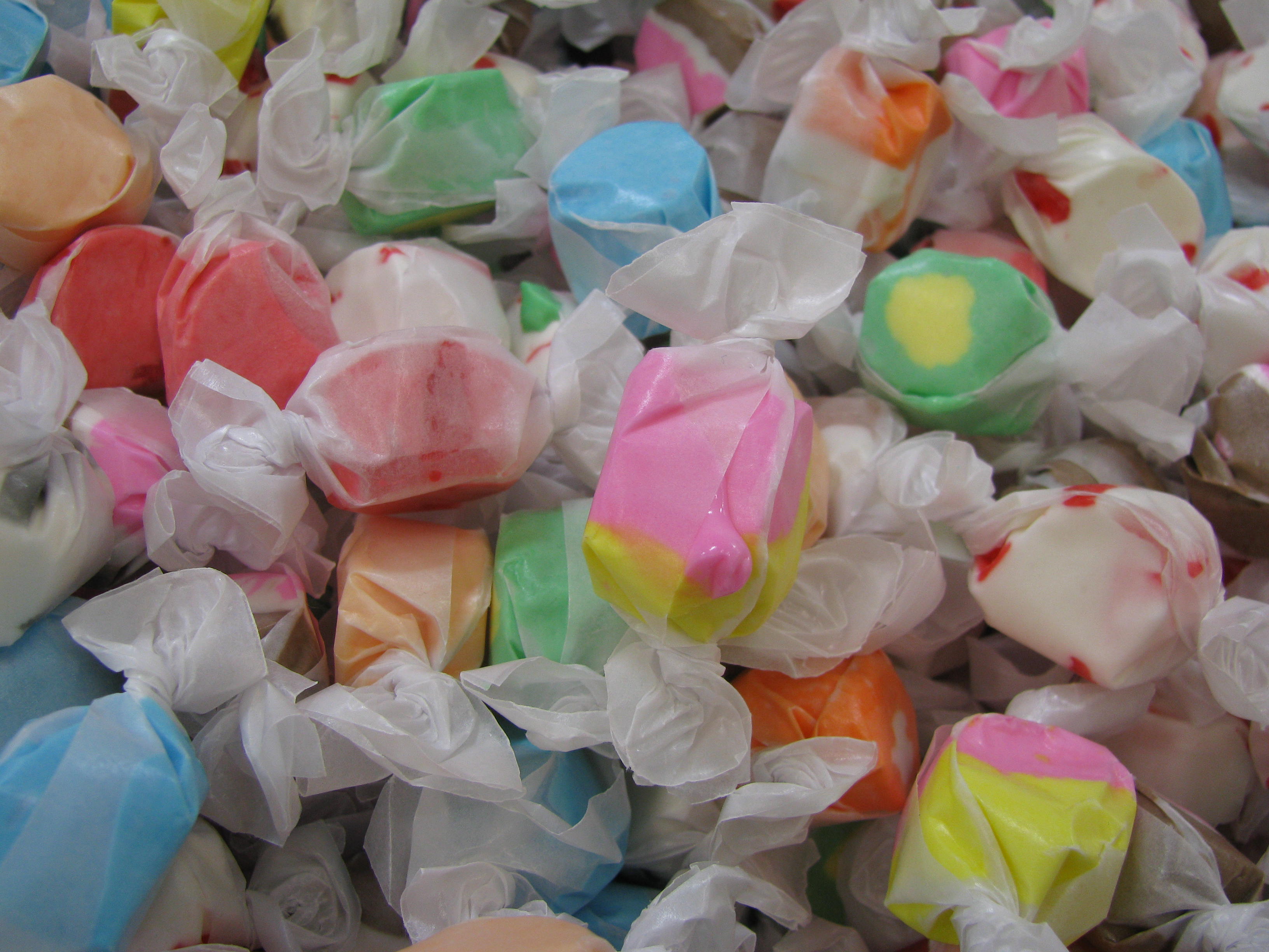 two big bins of salt water taffy at Cub Foods. I came home with a handful of red striped white taffy with a hint of peppermint… certainly not as colorful but less artificial coloring without sacrificing flavor.