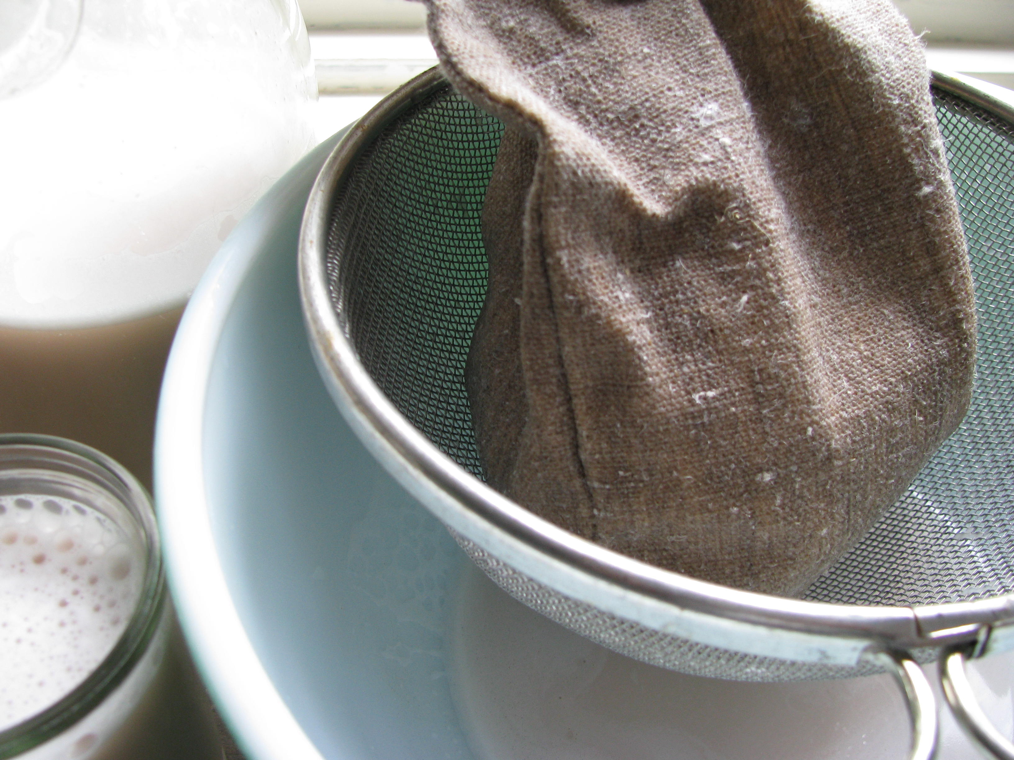 After soaking dried fruit to make yesterday's jam, I needed a use for the sweet soak water, so I decided to use it to sweeten homemade almond milk.