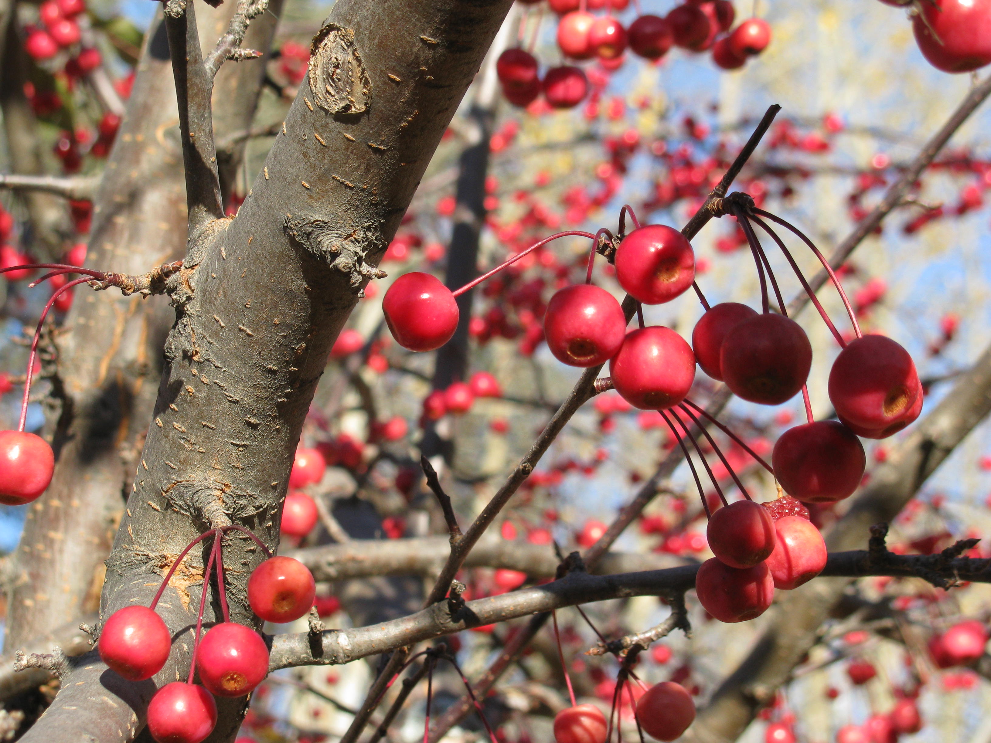 With the exception of oak trees that are still hanging onto a few of their brown withered leaves, the trees are nearly bare in central Minnesota. Our flowering crab apple tree is still providing a pop of color in the landscape.