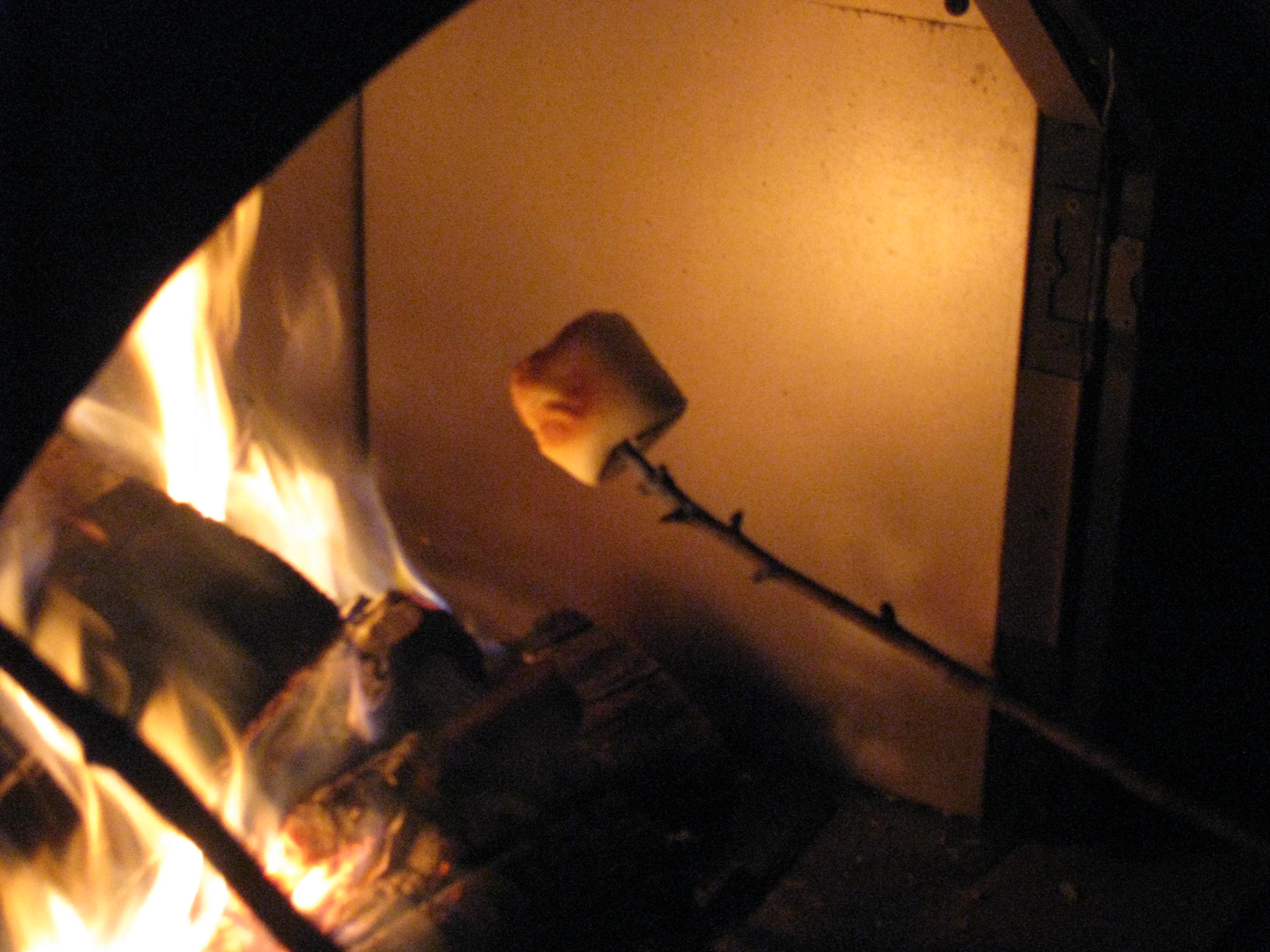 Hot dogs (free of sodium nitrates and sodium nitrites) and marshmallows for s'mores were roasted over a crackling fire in the porch fireplace.