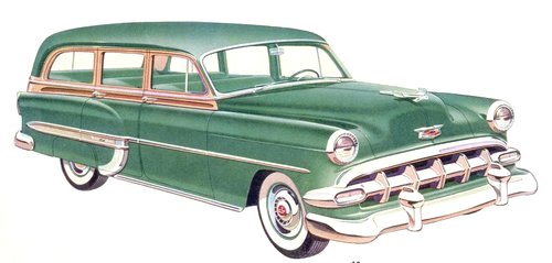 The car grandpa owned is like the one in the illustration below minus the side chrome and it was painted two-tone with a white top rather than a solid color.