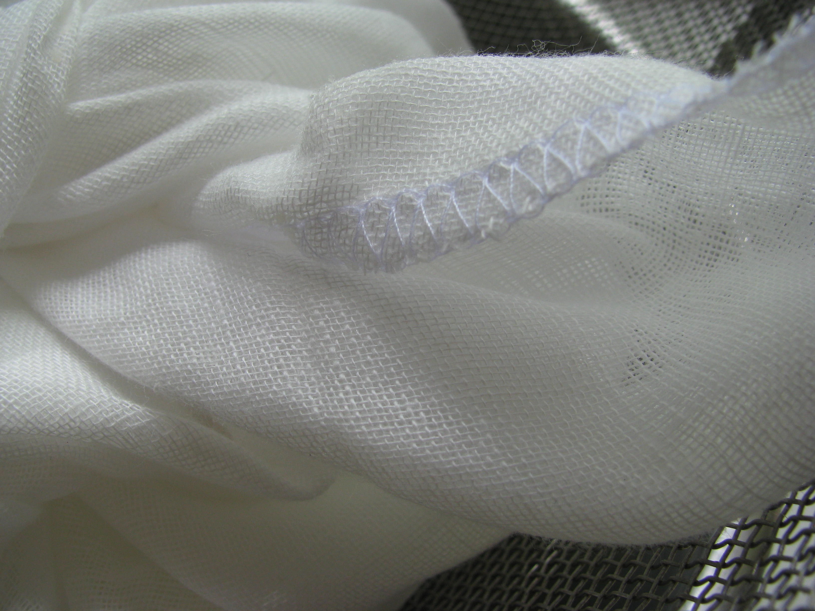 To make clabbered cheese, I first serged the edges of a double-layer square of cheesecloth to keep it from fraying when I wash it.