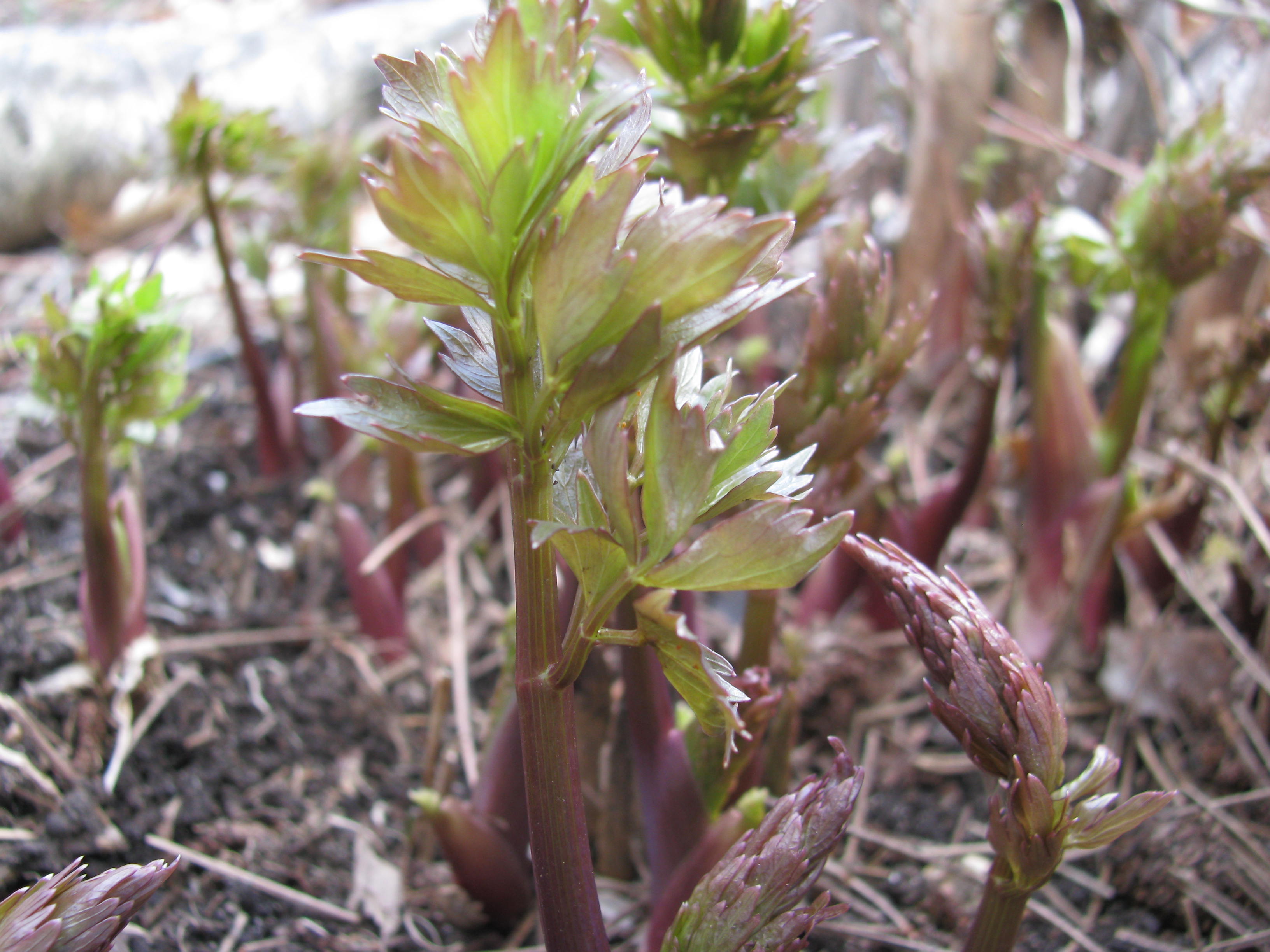 A hardy perennial herb, that has been dutifully displaying its early spring green and purple splendor for years in my zone 3 garden, is lovage. It grows six feet tall and spans three feet, so it's an excellent background plant behind shorter perennials. It self-seeds, so the plants can (and should) be divided to replant in a new plot so they don't become overcrowded. Rabbits don't nibble it and it's almost completely resistant to insects.