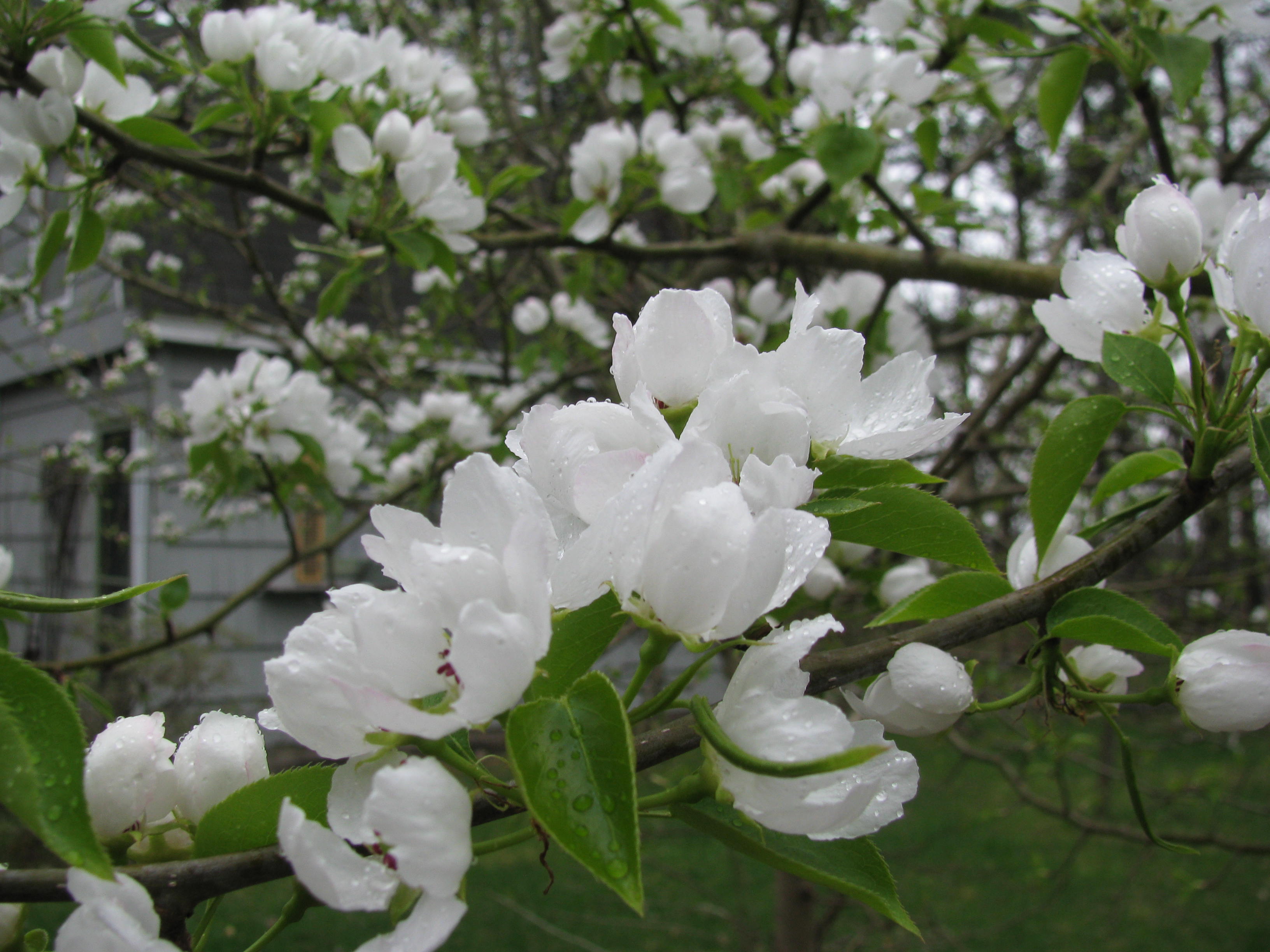 So pretty… a harbin pear tree in full bloom growing next to our out my kitchen window cabin.