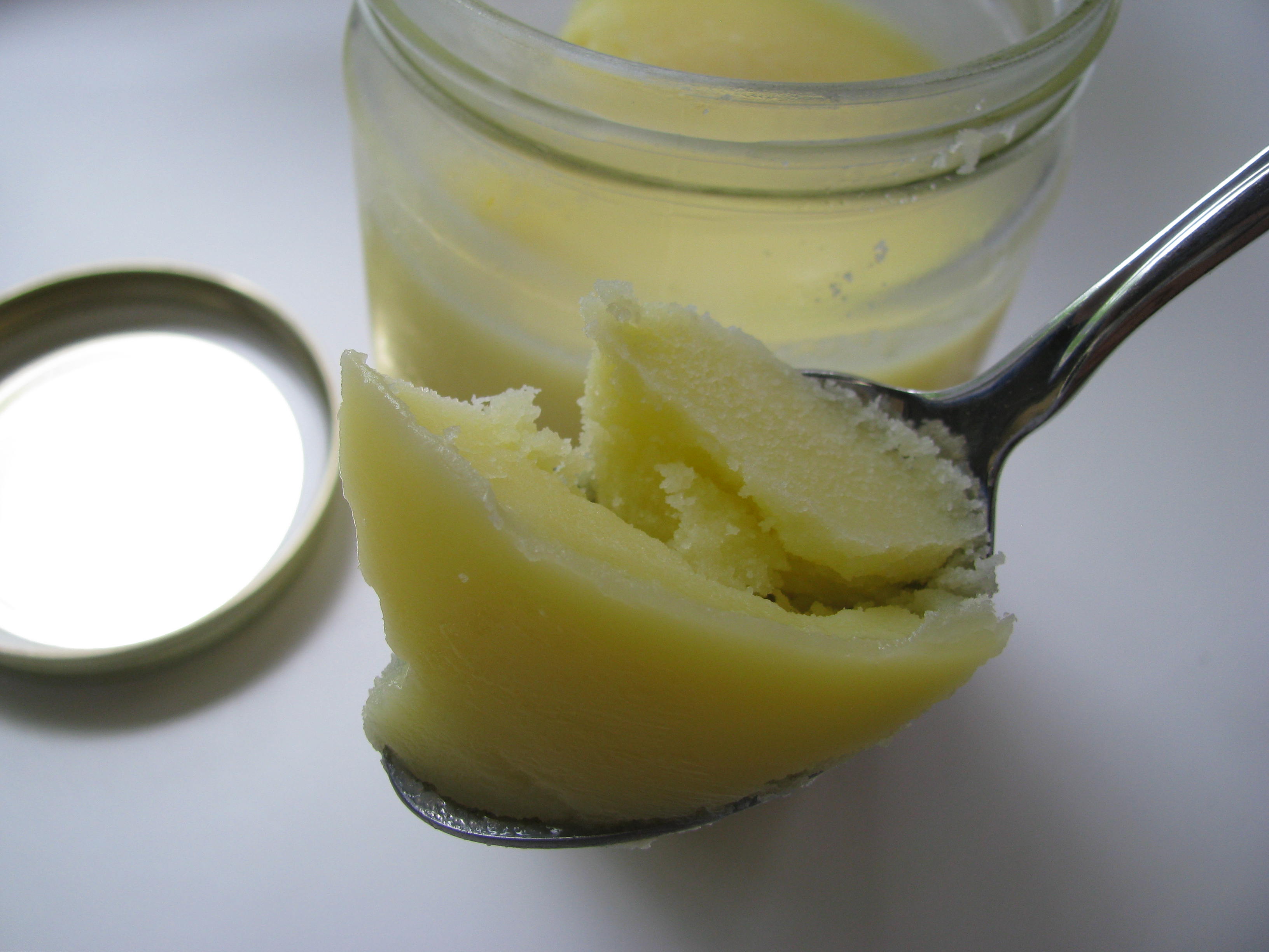 Because of its higher smoke point, ghee doesn't burn like butter, but it adds a wonderful, rich flavor like butter, so it is perfect for sauteing and frying. Making ghee involves separating the water from the milk solids. The easiest method is to make it in a crockpot. It couldn't be easier. Place 1 lb butter in an uncovered crockpot set on low. Go on with your life, since there's absolutely nothing required of you. No need to stir it. No need to check on it. In 8 – 12 hours, skim off the browned solids floating on top and discard, then ladle the beautiful, glistening yellow liquid ghee into a cloth-lined* funnel placed over a pint jar. Be careful not to include the milky sediment at the bottom of the crockpot. The ghee will solidify as it cools in the jar on your kitchen counter. It may be stored at room temperature or, for longer shelf-life, store in the fridge. *Tightly woven 90-count 100% cotton cheesecloth folded in four layers works perfectly. The ghee easily washes out of the cheesecloth in a soapy water-filled basin or bucket rendering the cloth usable over and over. I serge around the edges of the four-layer square of cheesecloth to prevent fraying, but you don't have to. 90-count 100% cotton cheesecloth may be purchased here