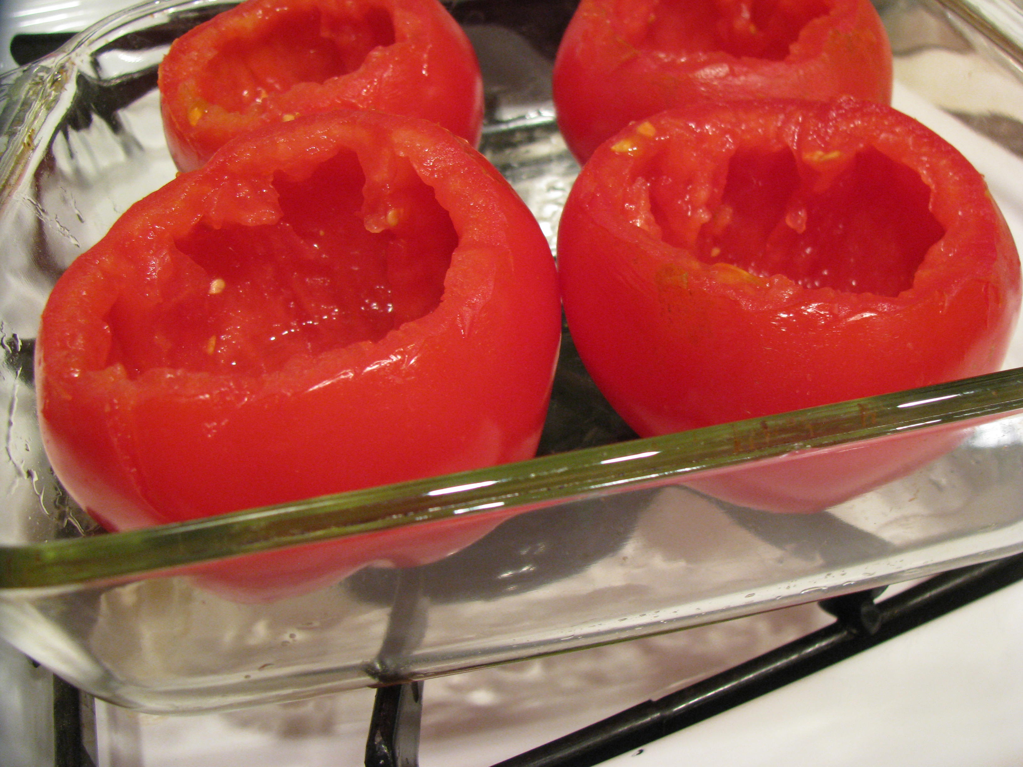 and a spoon to loosen and scoop out the tomato flesh (pulp). Be careful not to