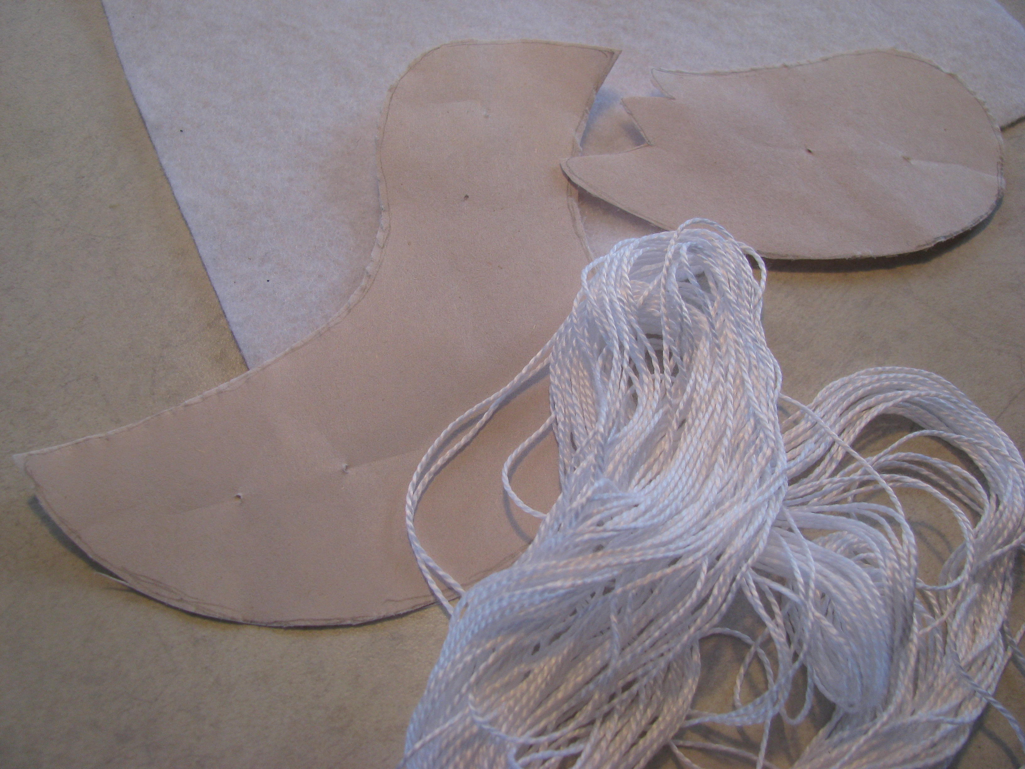 The supplies are very few. A piece of felt, scissors, large eyed needle, a pattern for the body and wings (click to enlarge the left photo below and sketch a quick pattern based upon mine), a stuffing material to give poof to the dove's body, and pearl cotton size 5. In the Michael's store display photo below, you can see what the string looks like in its package. Here's a detailed tutorial if you haven't ever done a blanket stitch or if your skill has grown rusty. It is used to stitch together the two halves of the body.