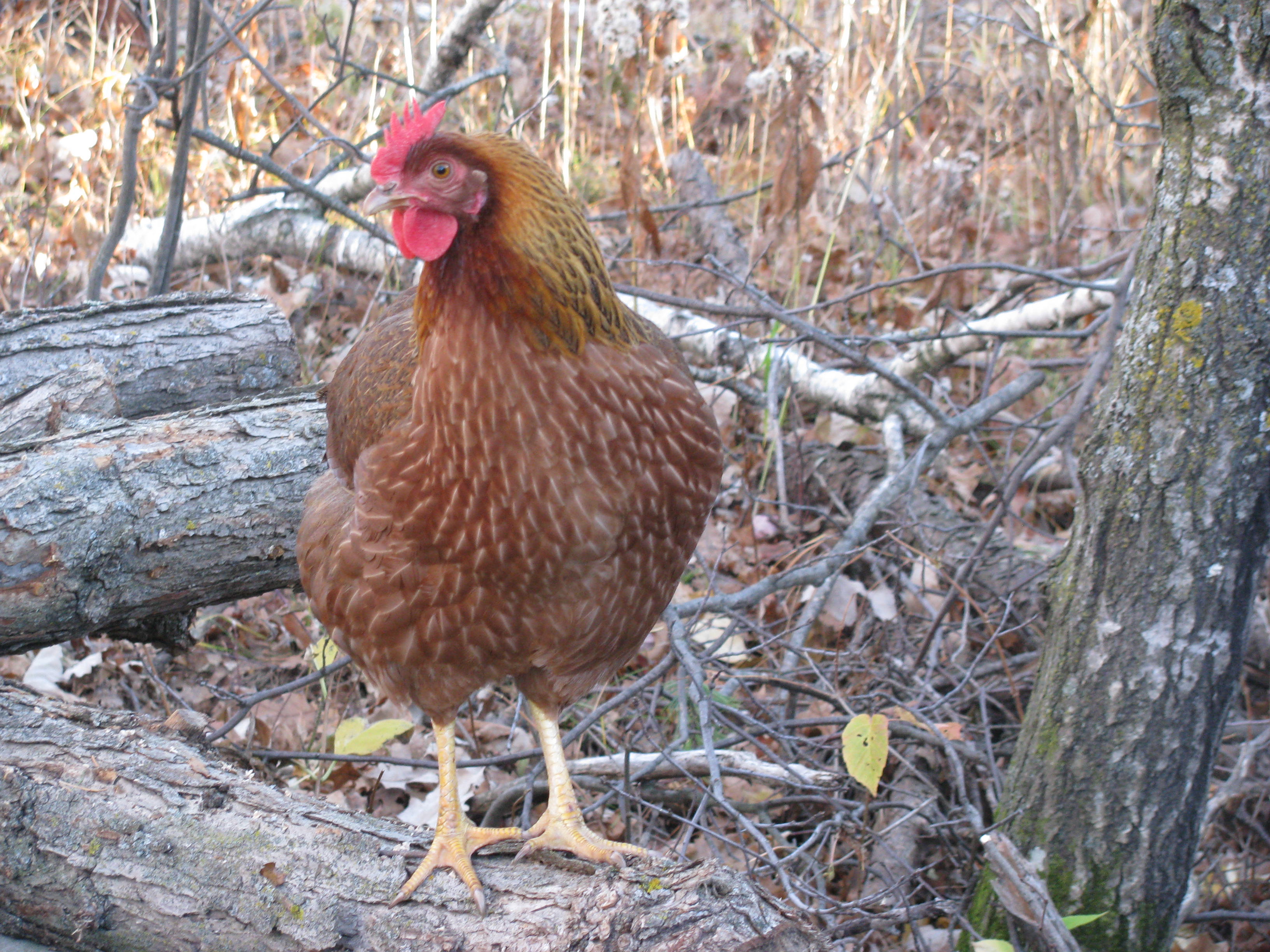 First, I positioned the four hardwood (oak) logs, that Dick had cut in 3-4 foot lengths several weeks ago, to allow time for the "anti-fungal compounds that trees naturally produce to degrade," in a crosshatch pattern to encourage air flow. One of my Welsummer hens, perched atop one of the logs, observed me curiously as I worked.