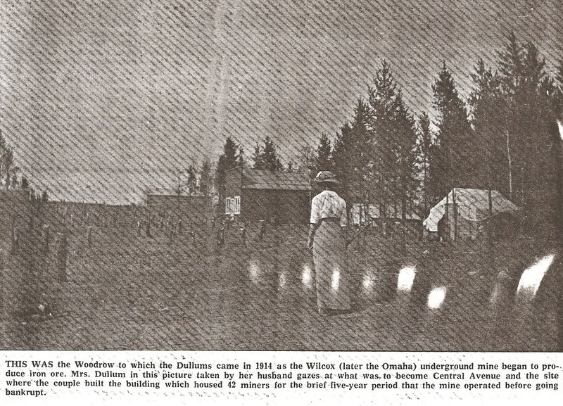 She had created a Power Point presentation to show us photos from her book of some lost towns in the Brainerd area. A black and white photo filled the large projection screen next to where she stood at her podium. It was of a woman walking down "Main Street, Woodrow, ca. 1914," the caption read. (See photo in book below.) Rhonda explained the significance of the town of Woodrow to the area's iron ore mining industry. In 1914, a woman named Olive Dullum (pronounced due-lum) and her husband, John, built a boarding house for mine workers in Woodrow northeast of Brainerd. My hand shot up to ask Rhonda if she knew the name of the woman in the photo. She did not.