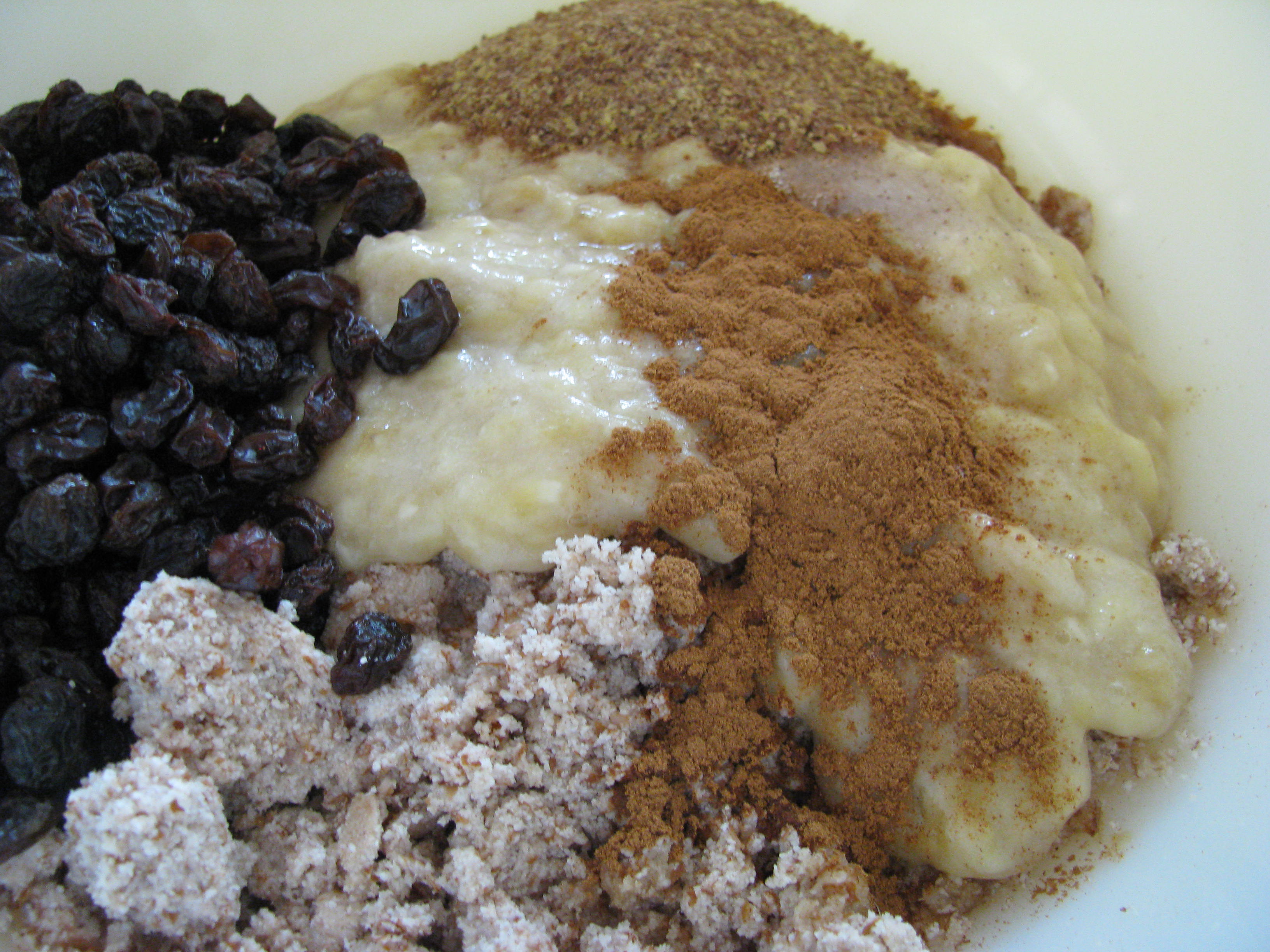 (Left Photo) Bananas, raisins, and a touch of maple syrup provide the sweetness. (Right Photo) The recipe makes the perfect amount of batter to cover one lined dehydrator tray from edge to edge 1/4" thick. (Photo Below) Post dehydration, it is a lovely color, like that of dates.