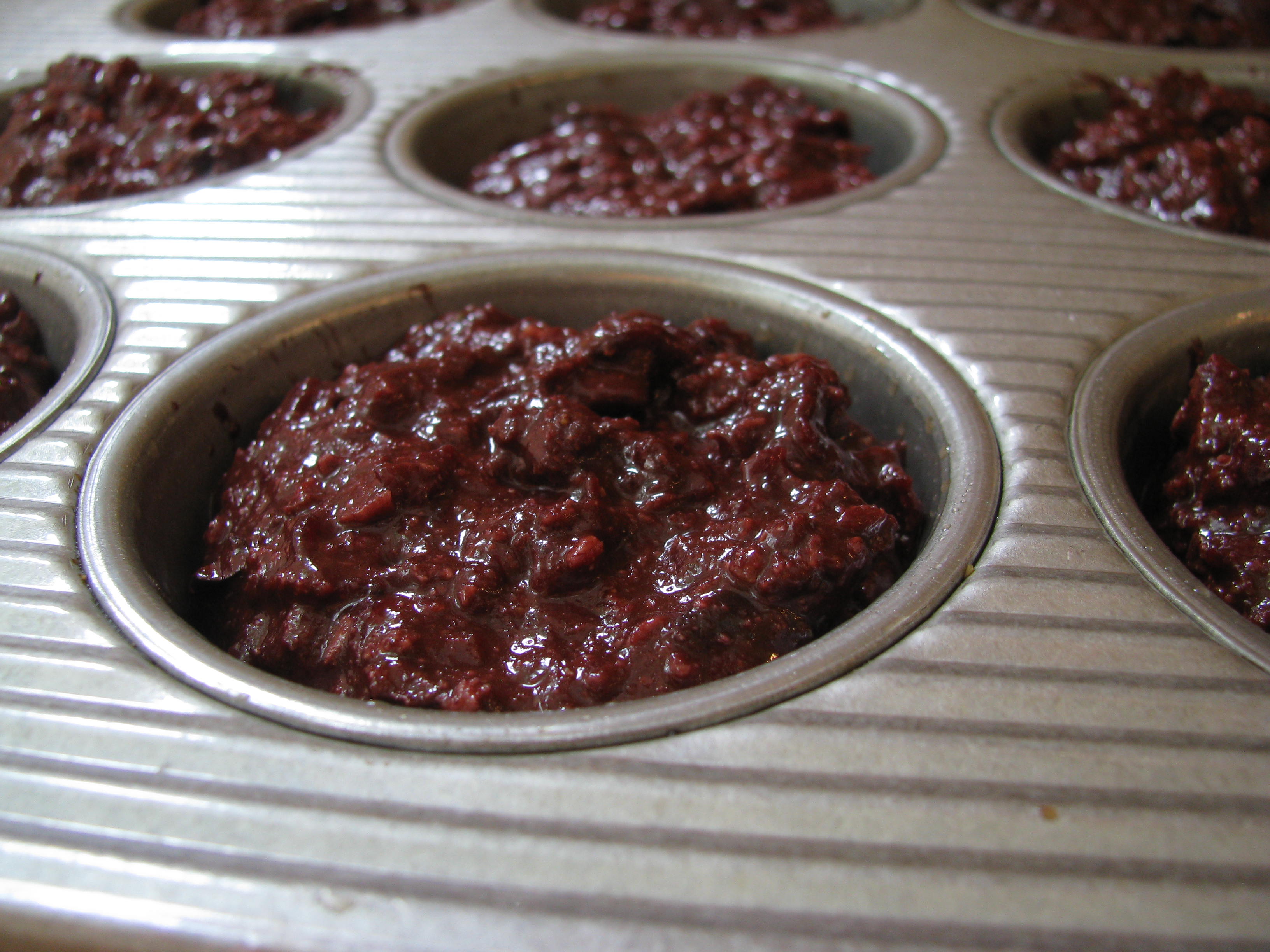 I stirred the cacao nibs into the batter just before portioning it into the muffin pan. Dick gave these cupcakes two thumbs up. I am in perfect agreement with that.