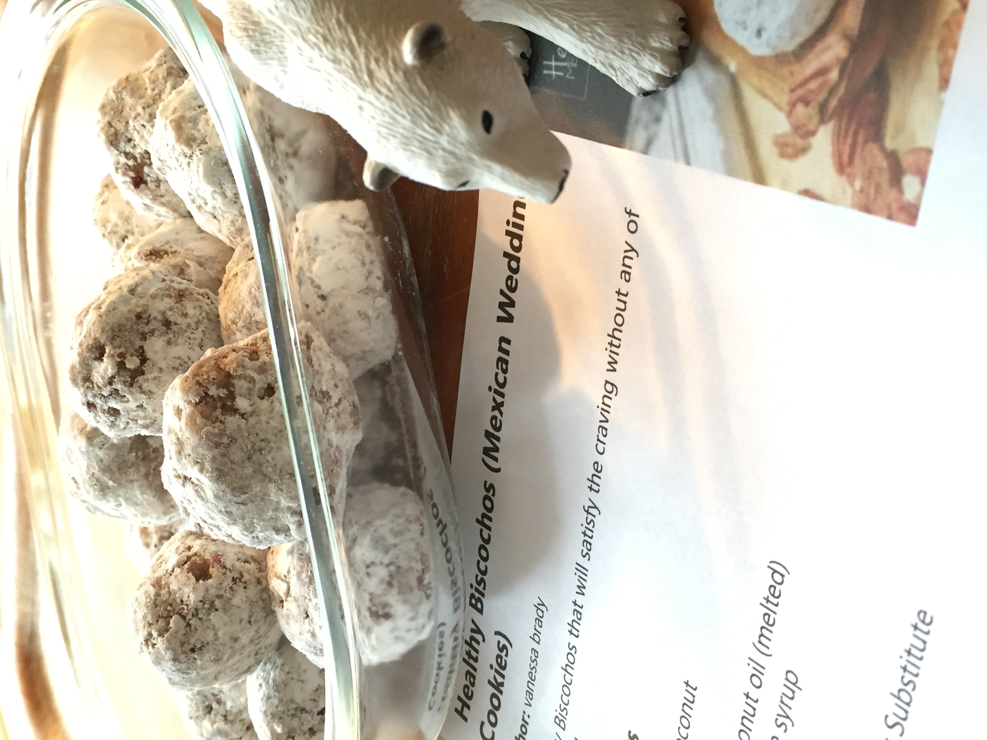 Christmas goodies, more often than not, are mega loaded with sugar and fat. However, a quick online search confirmed that, by subbing healthier ingredients and using substantially less sweetener, we can still enjoy an equally satisfying treat. While I heated honey and chopped nuts to make Honey Almond Brittle, my daughter, Jessie, made Vanessa Brady's vegan, raw, grain-free Healthy Mexican Wedding Cookies (aka Russian Teacakes) posted on her blog, Tried and True, by mixing ingredients in a food processor. Both keepers. Note: I neglected to record where I discovered the brittle recipe, but, when I rediscover it, I will give credit to its source.