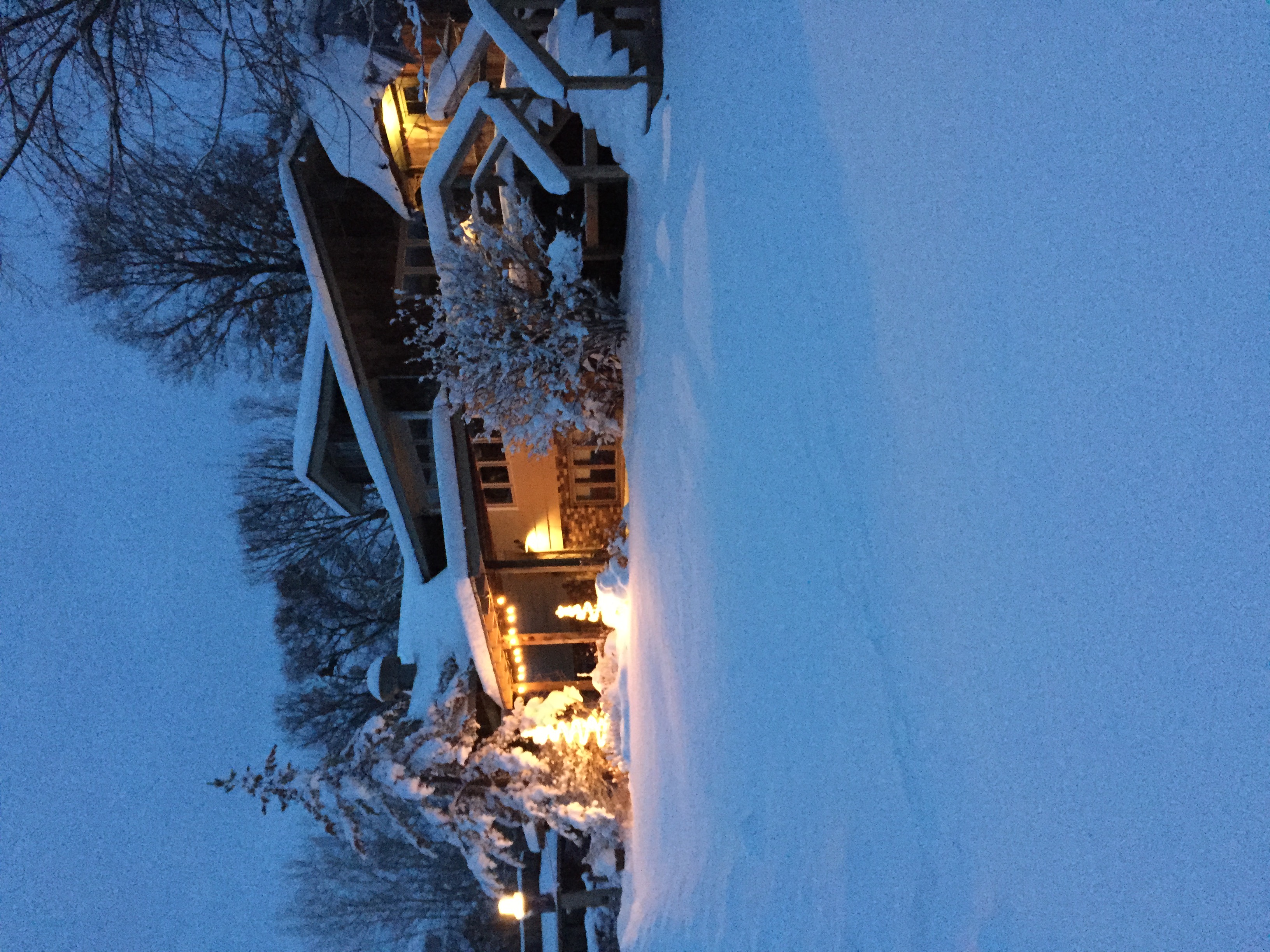 Even though the landscape is stripped of leaves and blossoms, winter is by no means drab. However, the soft glow of strategically-placed lights add a welcoming touch.