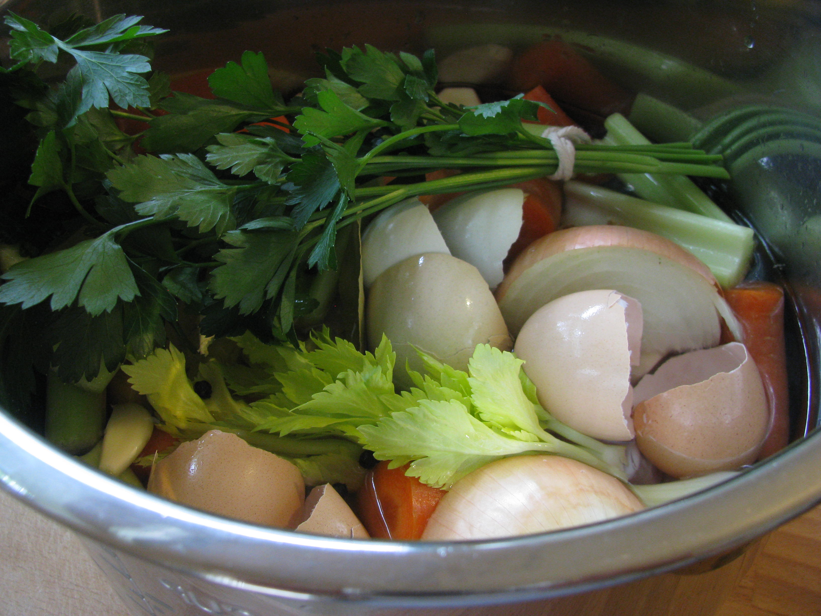 - Two-quart (8-cup) glass batter bowl with a lid and measurement markings to mix vinegar with water and store bones in fridge if using them to make a second batch of broth